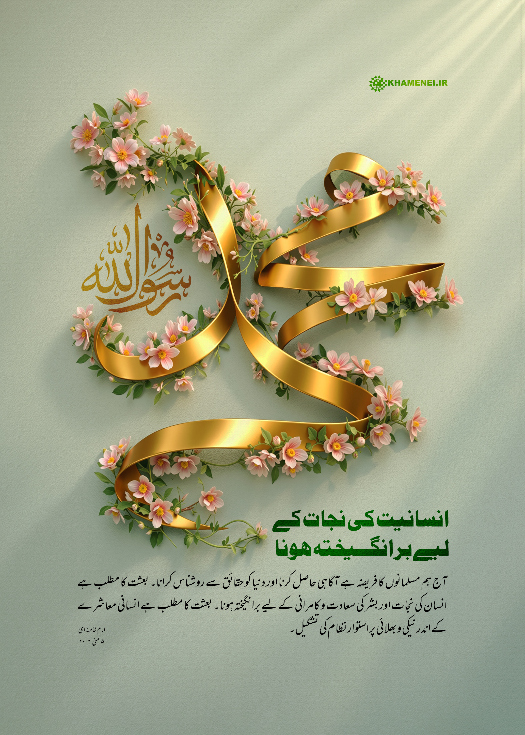 آج ہم مسلمانوں کا فریضہ ہے آگاہی حاصل کرنا اور دنیا کو حقائق سے روشناس کرانا۔ بعثت کا مطلب ہے انسان کی نجات اور بشر کی سعادت و کامرانی کے لیے برانگیختہ ہونا۔ بعثت کا مطلب ہے انسانی معاشرے کے اندر نیکی و بھلائی پر استوار نظام کی تشکیل۔