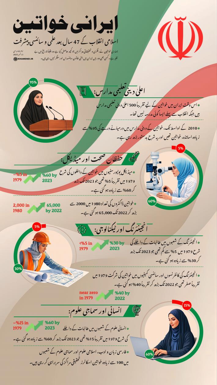 ہماری خواتین نے، فکری و تحقیقاتی مراکز میں جو کچھ حاصل کیا ہے وہ یقیناً تاریخ میں بے نظیر ہے۔ کسی بھی دور میں ایران میں اتنی خاتون سائنسداں اور مفکر نہیں رہی ہیں۔